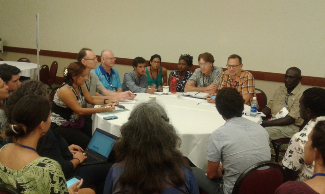 Participants at the Ecosystem-based Adaptation knowledge café, IUCN Congress, 4 September, Hawaii. Photo: SPREP.