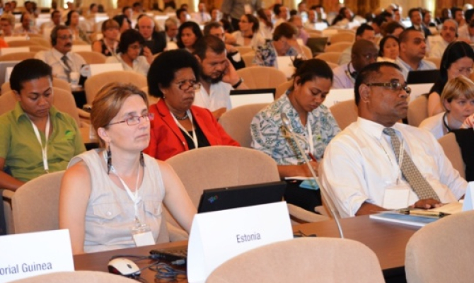The Fiji delegation seated next to Estonia at the main meeting of the Ramsar COP 11