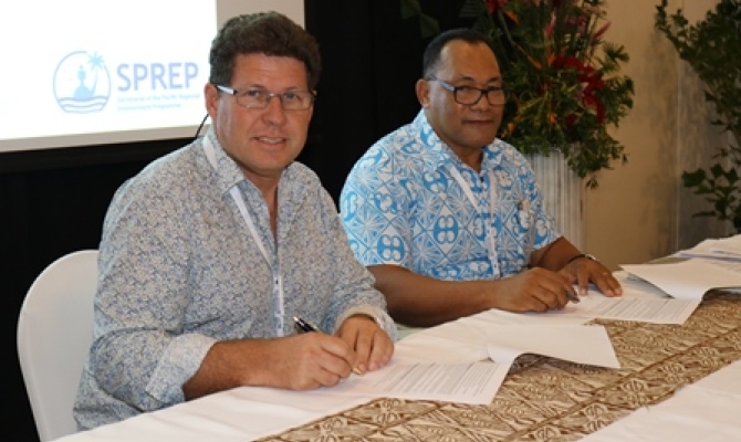 IMG 1286SPREP Director General, Mr Kosi Latu, signed on behalf of SPREP, while Mr David Paton, Director, signed on behalf of BPM. Photo: SPREP