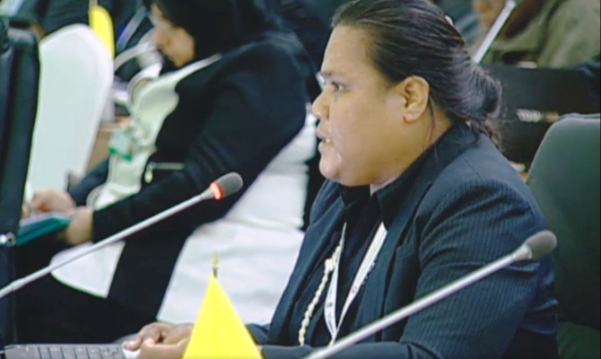 Miss Ratita Bebe of Kiribati making a statement at the CBD COP12 in Pyeongchang, Korea"As people born and raised on islands we are fully aware of the impacts caused by invasive alien species to our food security, to our health, our economic development and aspirations, and to our biodiversity and ecosystem function," presented Ms. Ratita Bebe, of Kiribati.