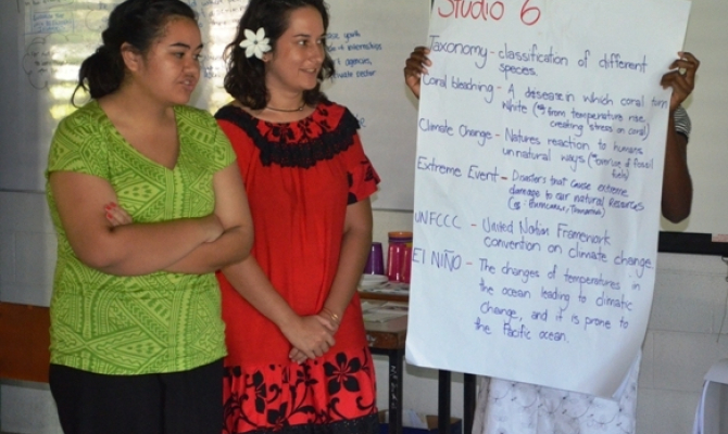 Ms. Brianna Fruean on left at the Pacific Youth Environment Network 2013 Meeting