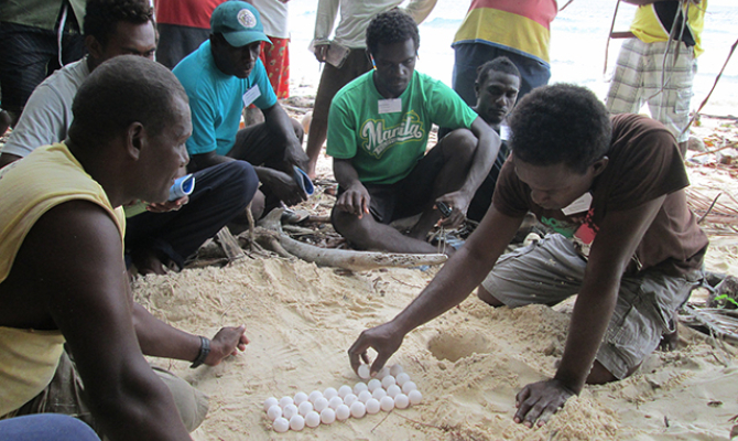 Pictured: Egg relocation exercise. Image (c) C.Siota/SPREP.