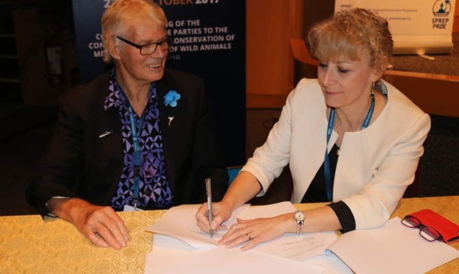 A further important event for SPREP, which was celebrated during a special Pacific side event at the CMS COP12, was the signing of the Pacific islands Year of the Whale Declaration by the United Kingdom on behalf of the Pitcairn Islands, following just two days after the signing of the Declaration by France, and bringing the total number of signatories to 14.