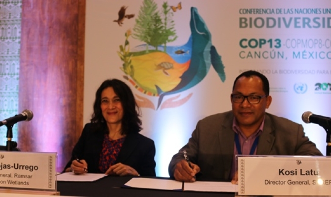 4 December 2016, CBD COP13, Cancun Mexico - The renewal of a partnership between the Secretariat of the Pacific Regional Environment Programme (SPREP) and the Ramsar Convention on Wetlands was signed on the sidelines of the Thirteenth Conference of the Parties to the Convention on Biological Diversity today.